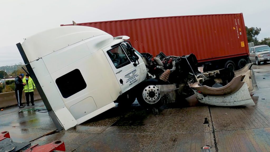 The collision between a white Ford F150 and white Chevy Silverado occurred just before 9:30 a.m. where Manning Avenue intersects with James Road and S. Calaveras Avenue, according to CHP dispatch records.