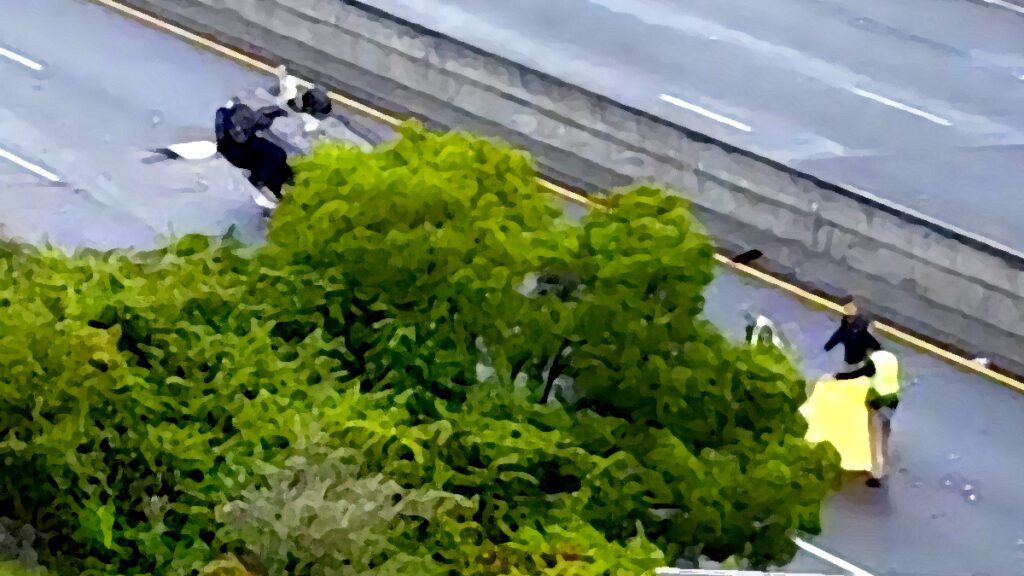 The damaged CRV ended up lying on its roof, upside down, in the center of Interstate 80.