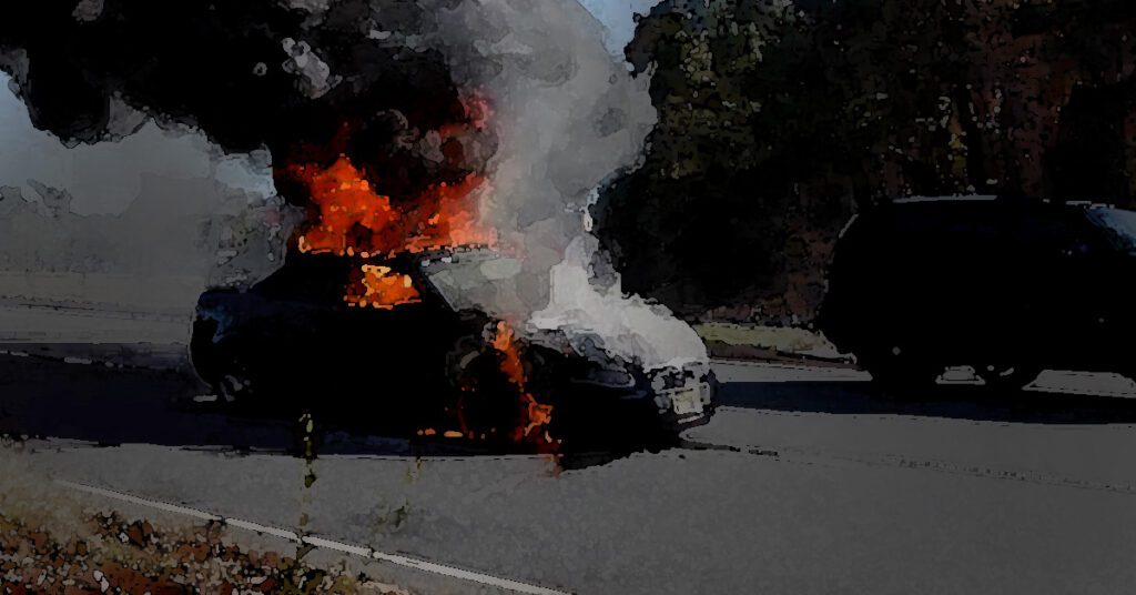 A vehicle caught fire after careening off State Road 23 southbound at Janss Road in the Moor Park area late Sunday.